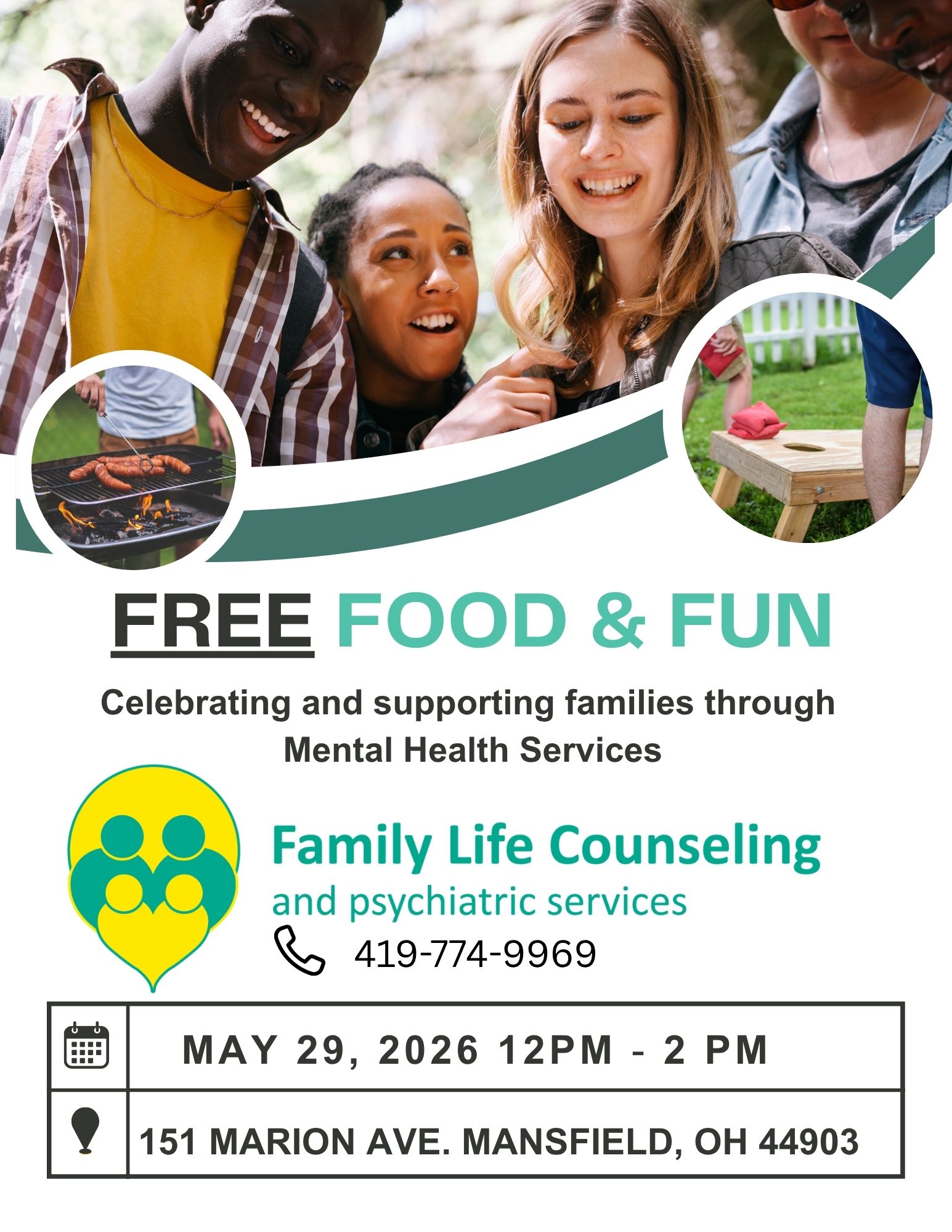 Join Family Life Counseling and Psychiatric Services for their Food, Fun, and Family Life event at 151 Marion Avenue in Mansfield. This free community event celebrates and supports families through mental health challenges and will feature food, fun activities, and opportunities to connect to others in the community! Open to all families. For more event information, please call Herb Ross at 419-774-9969.
